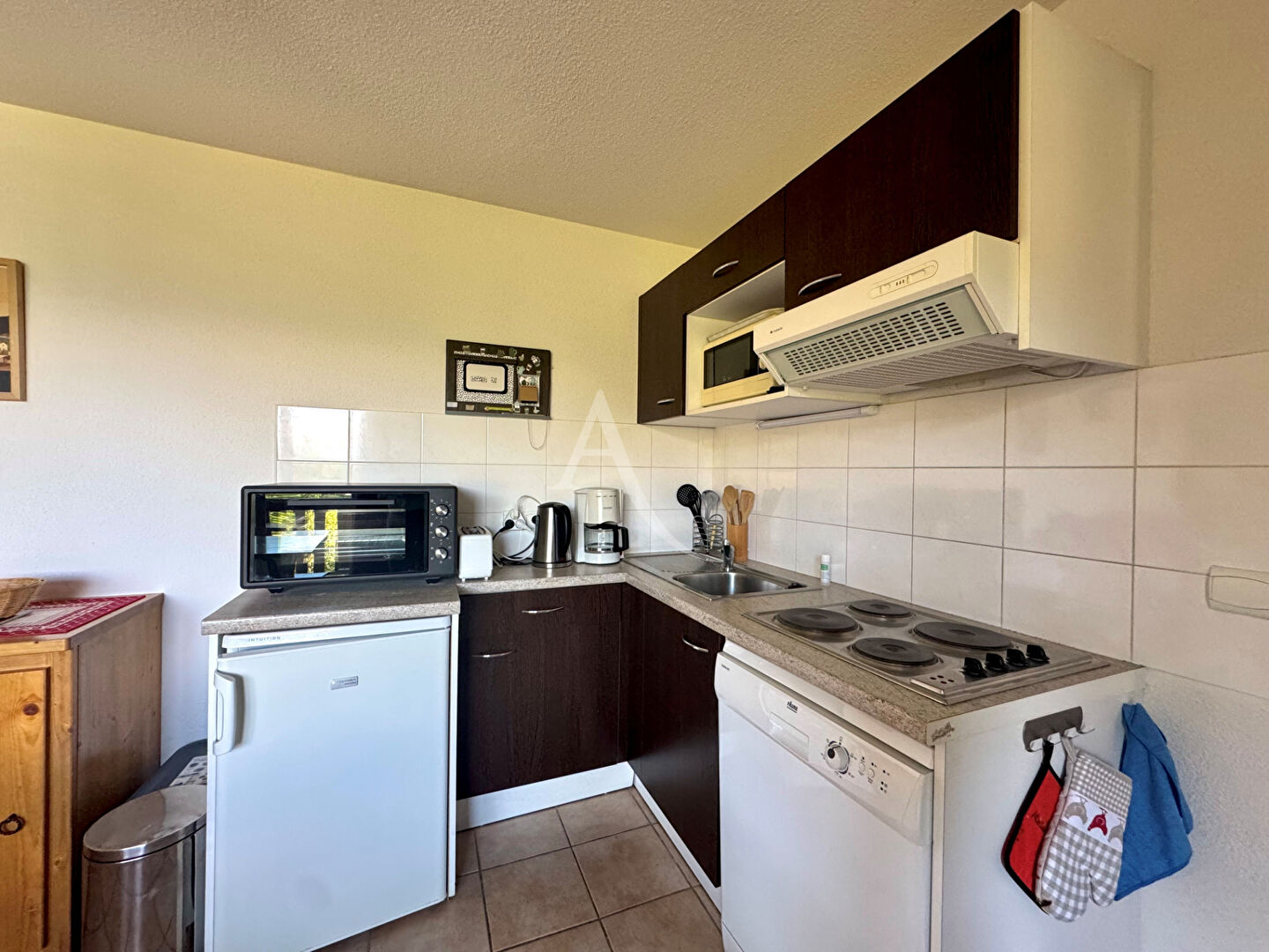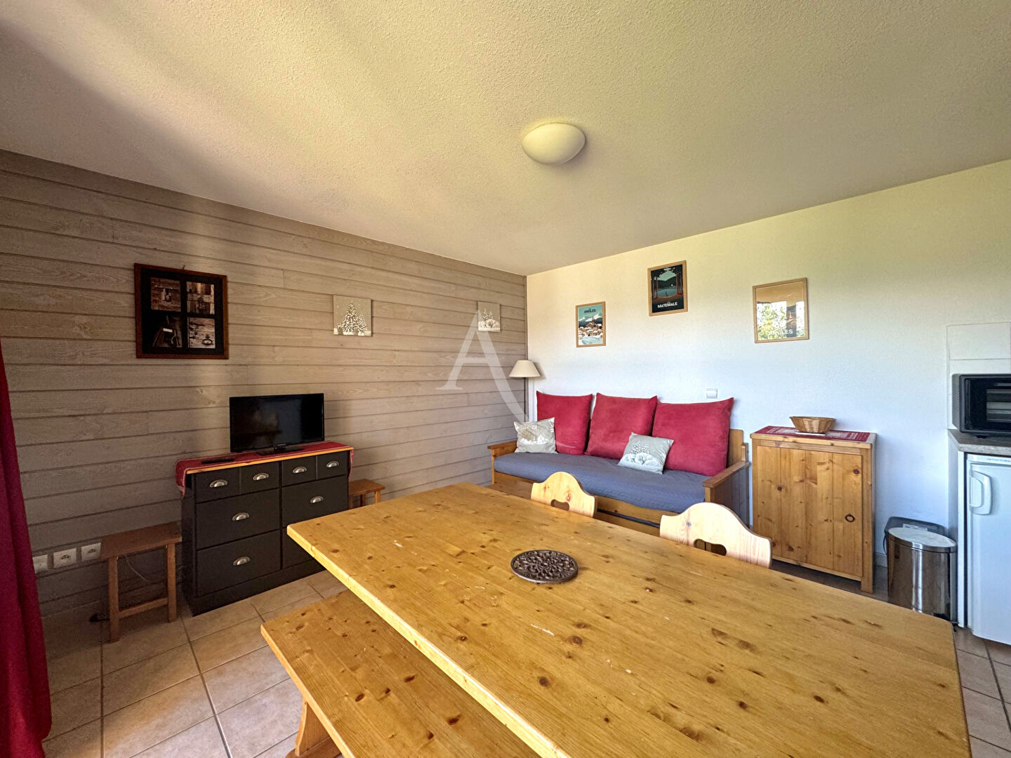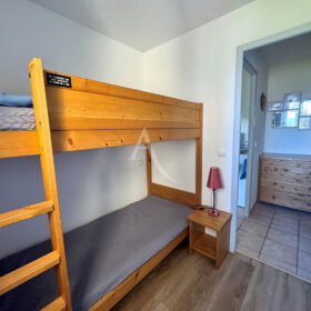 Au coeur du village des Angles, à deux pas des pistes de ski, bel appartement d’environ 45 m² situé dans une résidence calme. Il se compose d’une entrée avec grand placard, salle de bains, WC séparés, une chambre (lit 140 + placard), une chambrette (lits superposés), séjour lumineux ouvrant sur un balcon exposé sud-est avec vue sur les pistes et le lac.