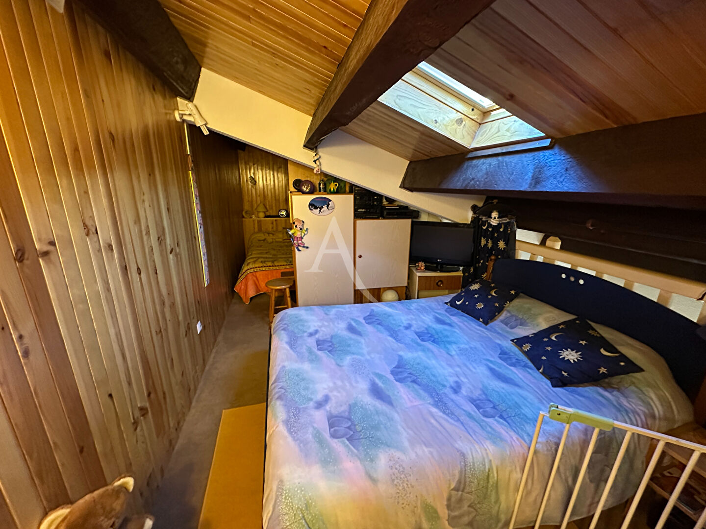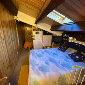 A l’étage, une mezzanine spacieuse offre une belle surface et est actuellement aménagée en coin nuit avec deux chambres, parfaite pour accueillir famille ou amis.